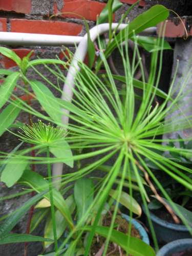 特性:一紙莎草是一種高而堅韌的挺水植物,約可長到4至5公尺高。