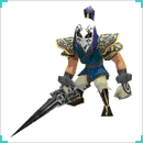 ”變形怪物。沒有表情帶著白色蒙面布,衣服和頭髮顏色呈藍色,兩肩有護肩,腿部有護腿,腿部的衣服有點破碎,拿著和身體長度差不多的劍。 |